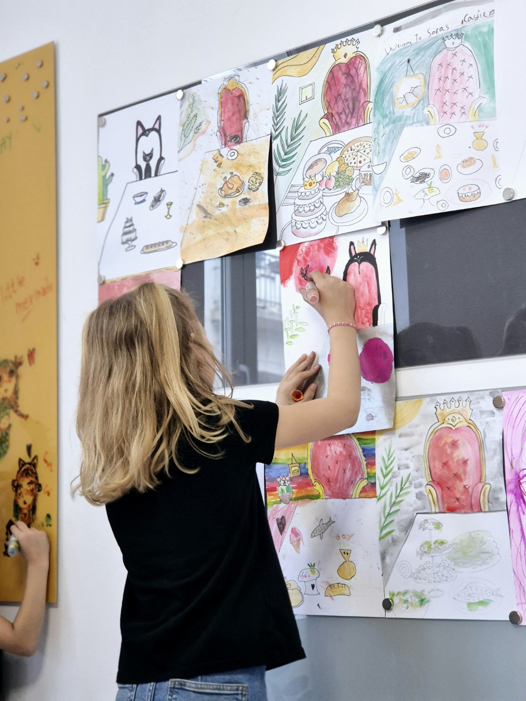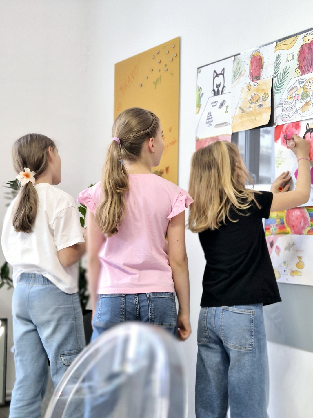 "Cursul de desen pentru copii este foarte interesant, care provoacă imaginația copiilor. Fiecare clasă are o temă diferită care implică utilizarea diferitelor materiale și metode de exprimare: de la culorile clasice și creioane până la picturi cu mușchi sau forme de lut. Copiii au ocazia să experimenteze ceva nou la fiecare oră."
